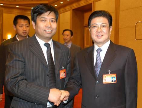 十届全国人大四次会议期间,全国人大副委员长王兆国与开元官方网页版董事长李晓恩亲切交谈并合影