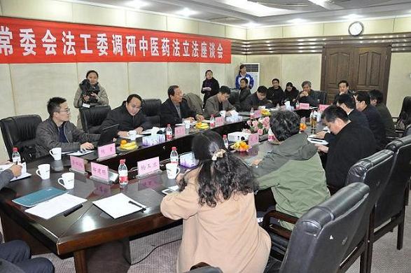 参加座谈会的有河北省及保定市医药界领导和医药界知名人士。大家结合河北省中医药事业发展的现状及存在的主要问题围绕中医药法的建设展开深入研讨。主要内容有如何健全中医药服务体系、加强中医药资源保护、完善中医药管理体制、健全中医药传统知识保护、中医药发展中存在问题及相关建议等。第十、十一届全国人大代表、药都制药集团董事长兼总经理李晓恩就如何将中药材籽种秧苗纳入中医药法管理、如何界定中药材与农副产品、中药材标准如何制定及如何落实中药招投标等提出了自己的建议。