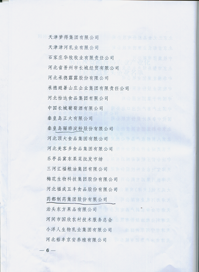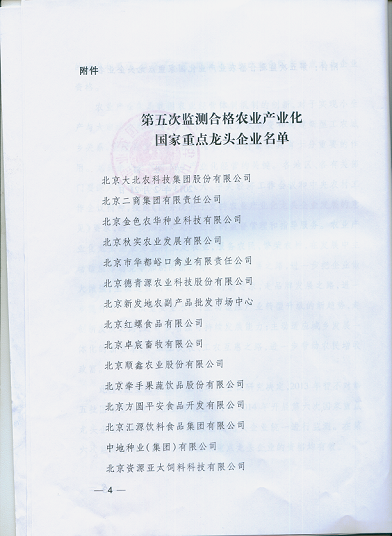 农业产业化国家重点龙头企业第五次监测我公司被认定为合格